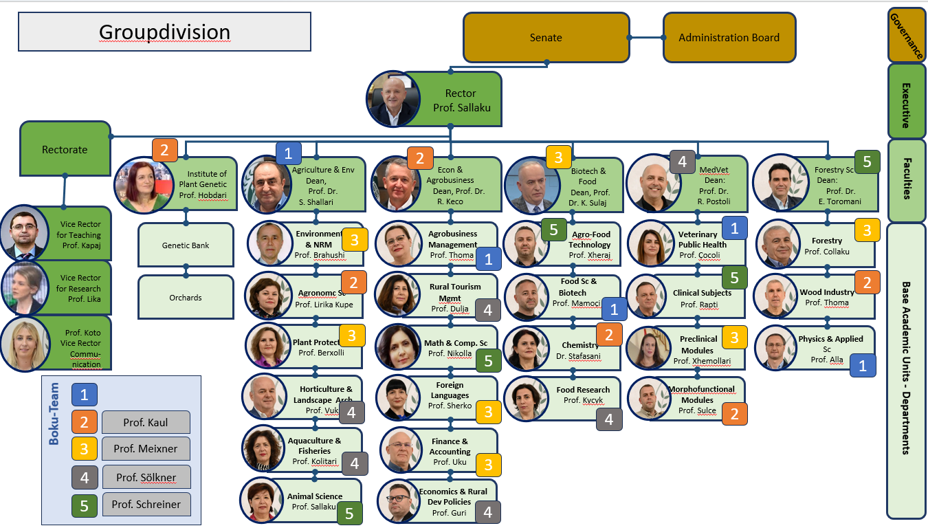 The AUT 2030 Project advises the “decision making” bodies at the Agricultural University Tirana. Thus, any suggestion developed within the project activities must be approved by the University bodies according to the Albanian law.